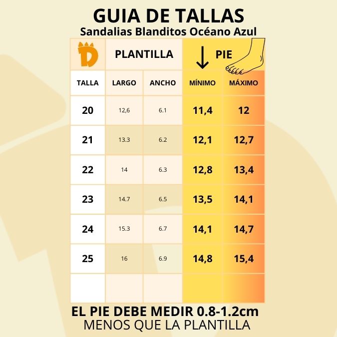La tabla de tallas de los artículos corresponde a las medidas de la plantilla.